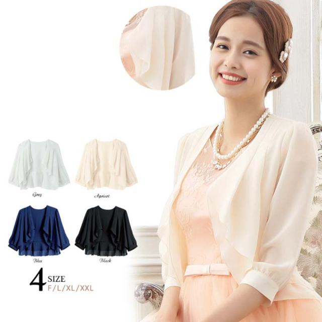 送料無料 ボレロ 結婚式 お呼ばれ 大きいサイズ ジャケット パーティーボレロ パーティボレロ 結婚式ボレロ 二次会 羽織物 フォーマル 謝恩会 披露宴 長袖 七分袖 カーディガン パフスリーブ パール ドレス ワンピース レディース 春 夏 春夏