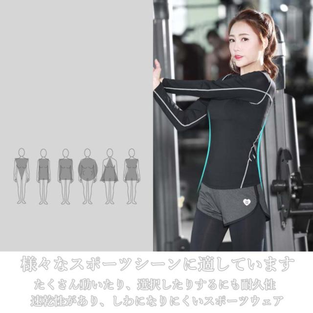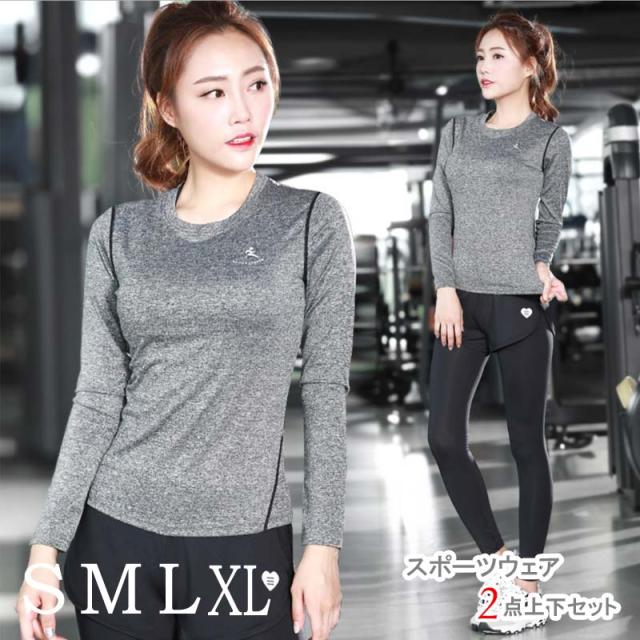 スポーツウェア レディース 上下2点セット 長袖Tシャツ 一体型レギンス スポーツパンツ フィットネス ヨガウェア ジムウェア セットアップ ルームウエア スポーツ ランニング トレーニング マラソン 吸汗速乾 メール便送料無料
