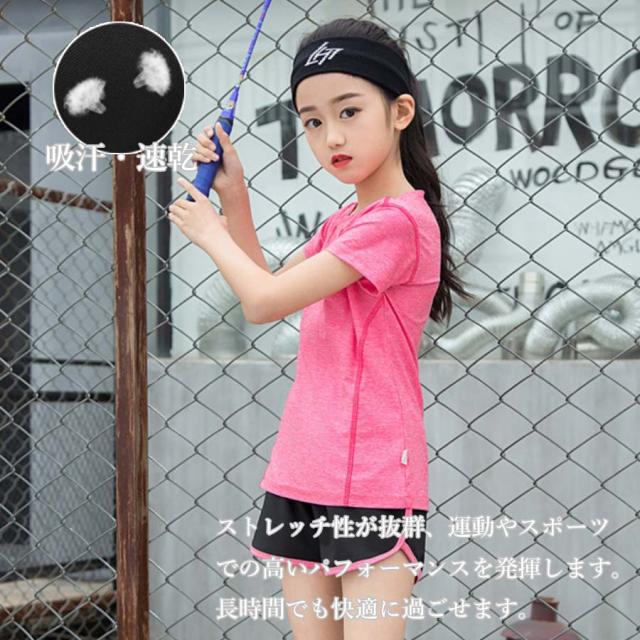 スポーツウェア キッズ tシャツ スポーツウェア セットアップ キッズ ジュニア 2点セット キッズ スポーツパンツ半袖 吸汗速乾 tシャツ 半袖 春夏 生地 シャツ スポーツウェア トレーニングウェア 子供服 女の子 運動会 メール便送料無料