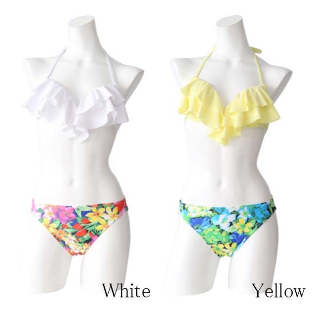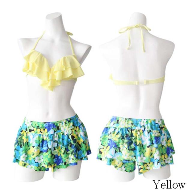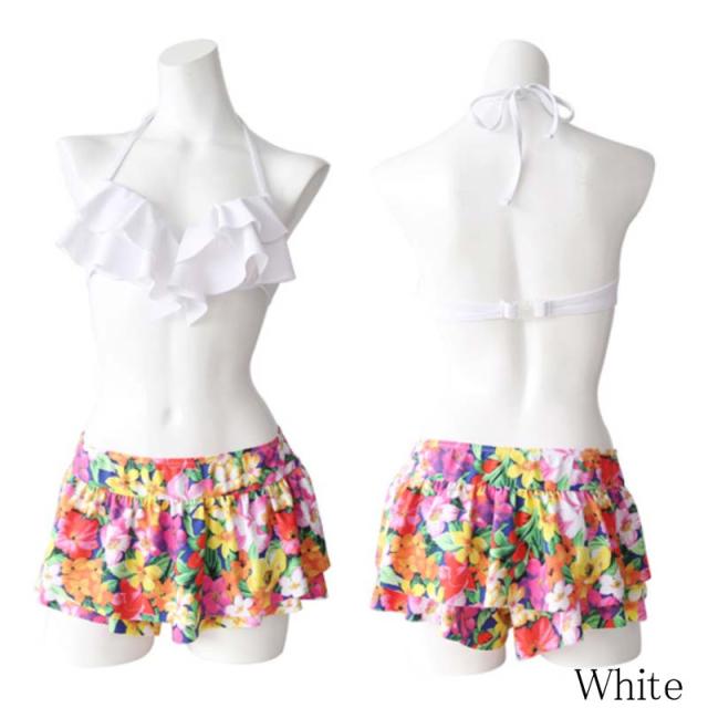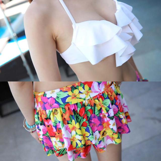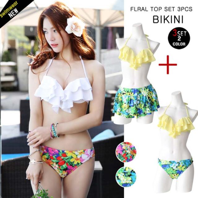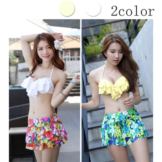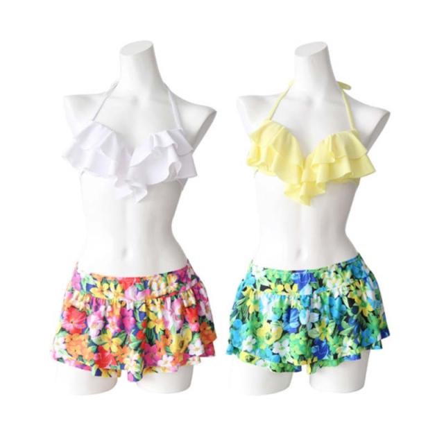 メール便 送料無料 レディース 水着 ビキニ フリルビキニ/S/M/L フレア水着 花柄 3点セット スカート 通販 ビーチ トレンド セパレート mizugi リゾート ママ 水着 体型カバー 女の子 小胸 クール セクシー パッド付き 厚い生地