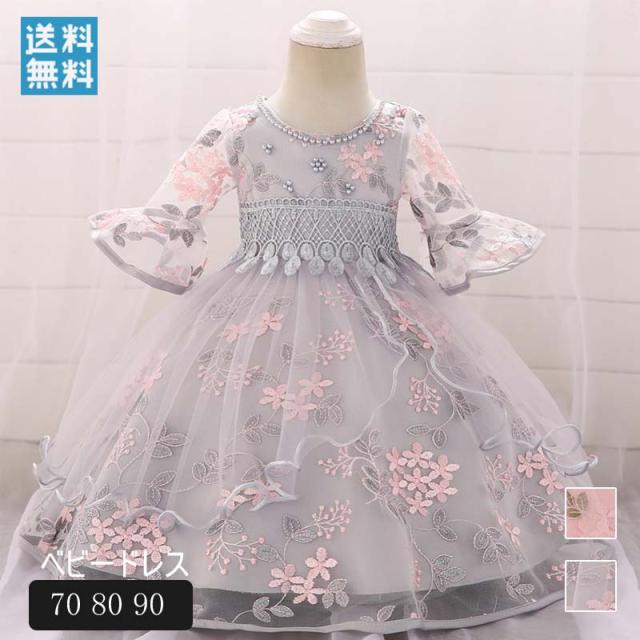 メール便送料無料 子供服 ベビードレス 結婚式 女の子 赤ちゃん ベビー服 お宮参り ベビードレス フラワー ベビードレス 女の子 セレモニードレス レース ワンピース 子供 グレー ピンク 結婚式 プリンセス 豪華 プレゼント 出産祝い