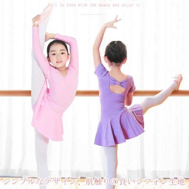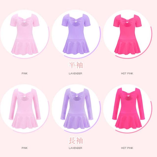 メール便送料無料 激安 シンプル バレエ レオタード 長袖 半袖 スカートタイプ 子供用 ジュニア バレエ用品 格安 通販 新体操 レッスン こども 発表会 レッスン着 練習着 発表会衣装 レオタード 体操服 こども 女の子 ピンク パープル ローズ
