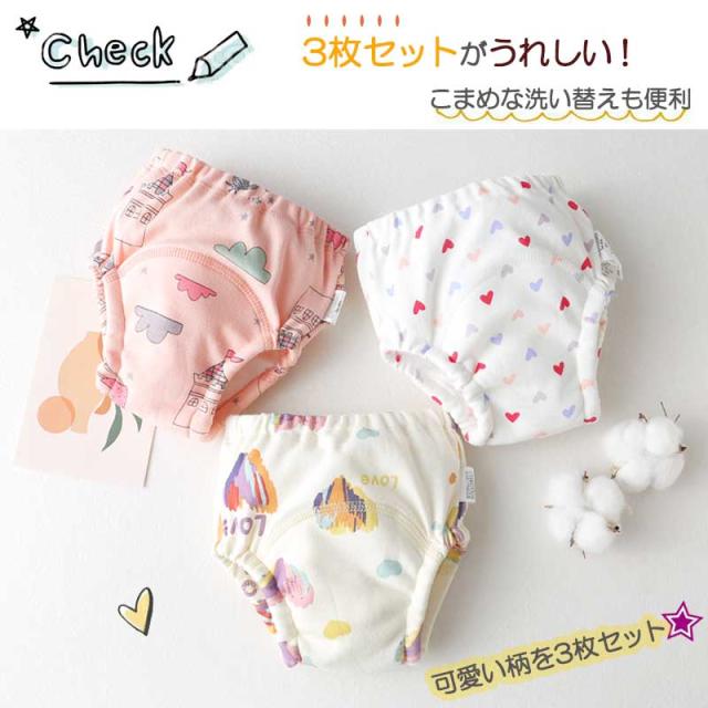 送料無料 お任せ3枚セット トレーニングパンツ 男の子 女の子 ベビー 4層 防水 トレーニングパンツ 子供 子供服 ベビー 服 赤ちゃん 4層 3枚組 トレパン トイレトレーニング 通園 園児 保育園 女の子 かわいい おしゃれ ベビーグッズ
