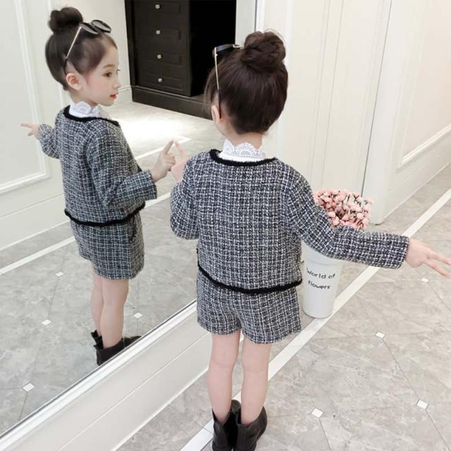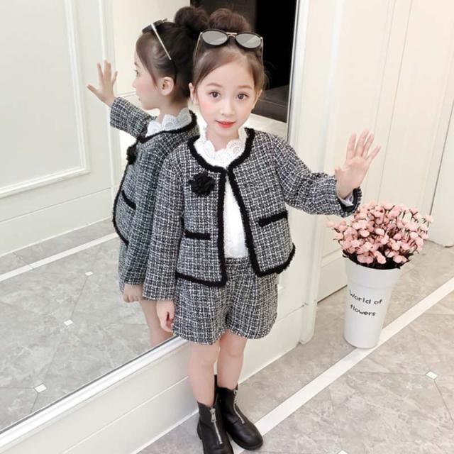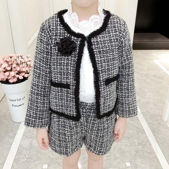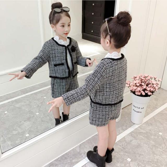 韓国子供服 キッズ 千鳥 上下セット セットアップ 長袖 2点セット 千鳥格子ジャケット フォーマル セットアップ セット 女の子 子供服 キッズ アウター 上下セット 入園式 長袖 秋冬 通園 通学 可愛い 人気 可愛い