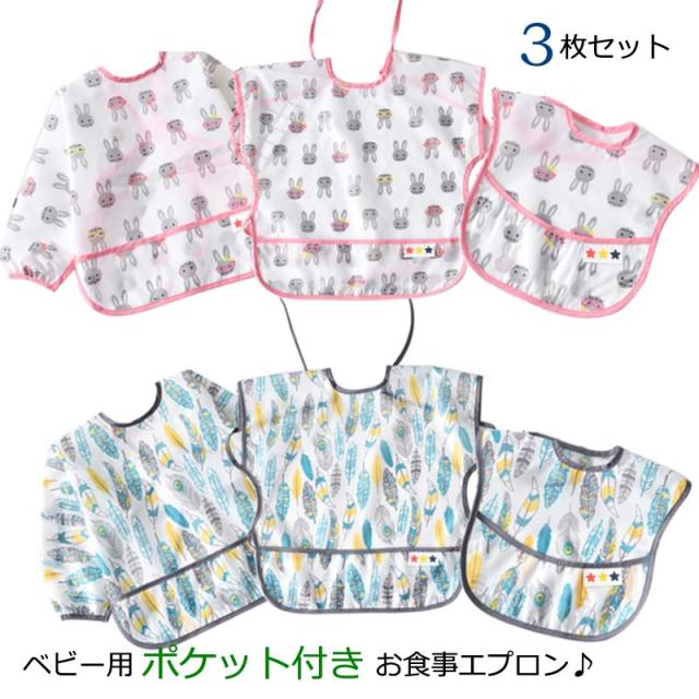 メール便送料無料 3枚セット ポケット付き 防水食事用エプロン 男の子 女の子 お食事エプロン ポケット付き 防水 防水加工 赤ちゃんエプロン スタイ よだれかけ ベビー 赤ちゃん キッズ 出産祝い 袖なし