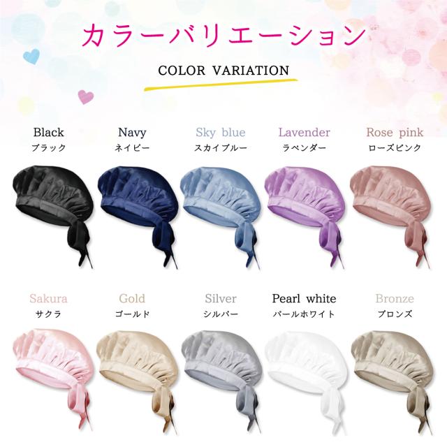 シルクナイトキャップ 天然シルク100% ヘアキャップ ギフト リノウル ブラック ゴールド ラベンダー ローズピンク サクラ ブロンズ シルバー ネイビー パールホワイト