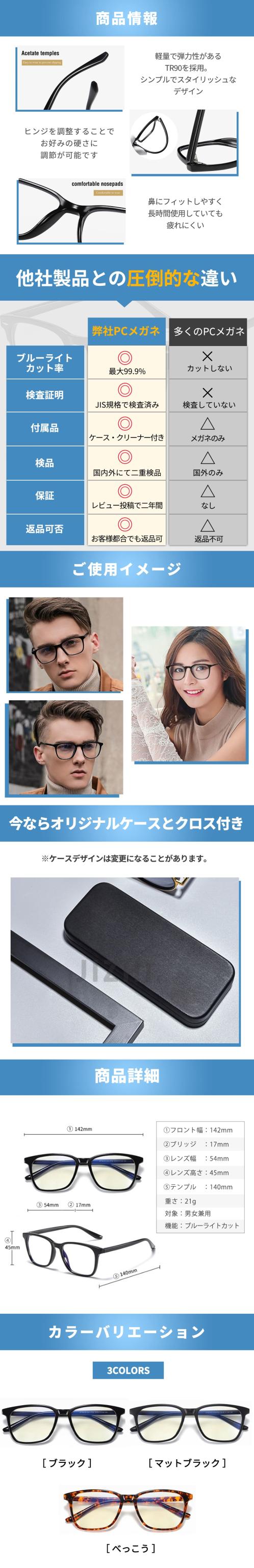JIS規格 ブルーライトカット メガネ 度なし PCメガネ PC眼鏡 メンズ レディース uvカット メガネ ケース付 99%カット