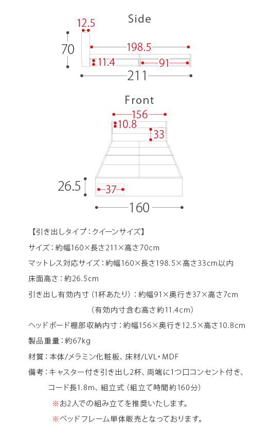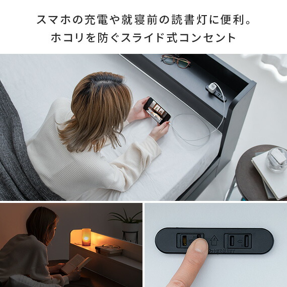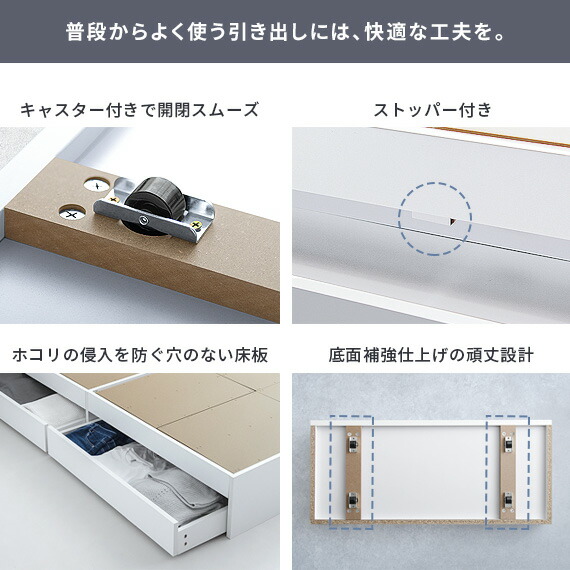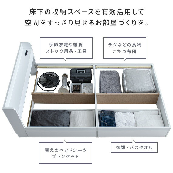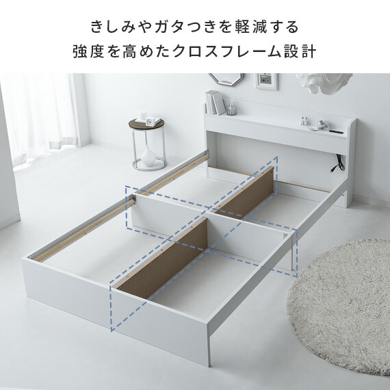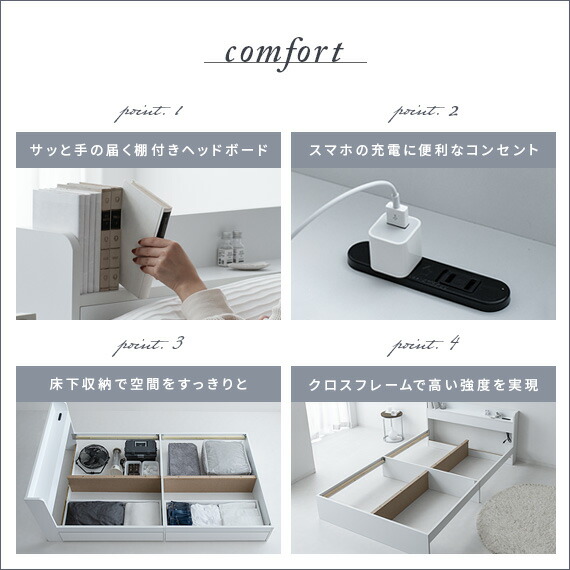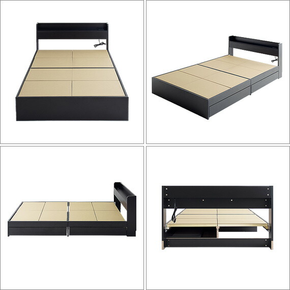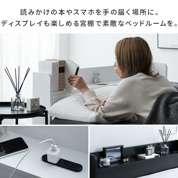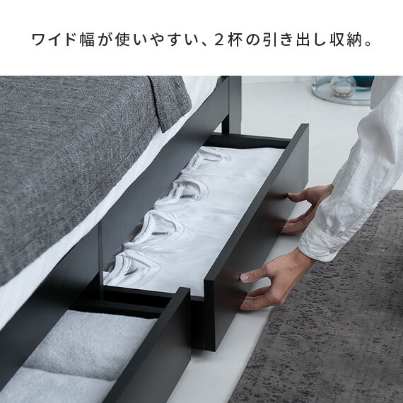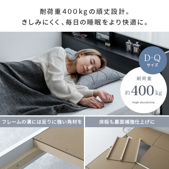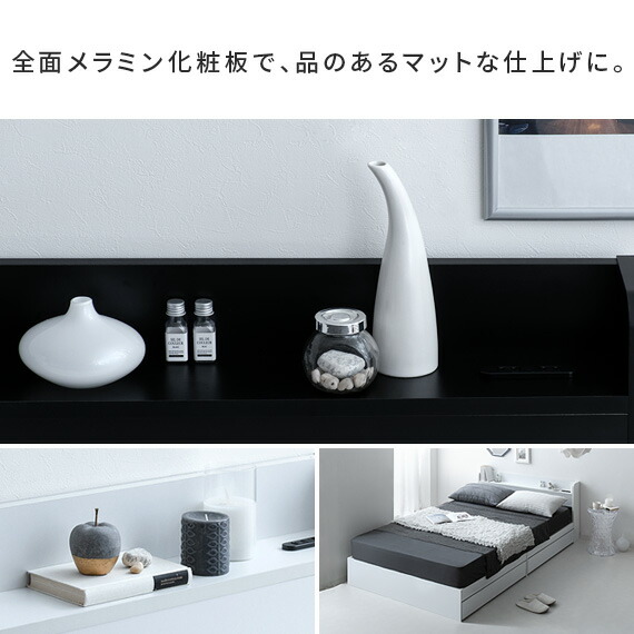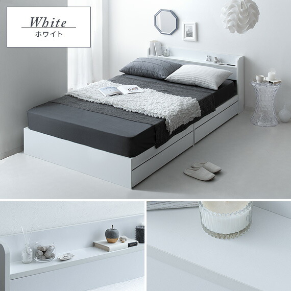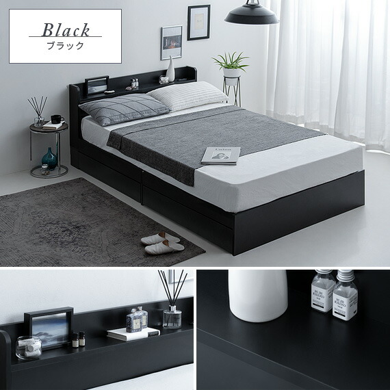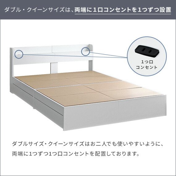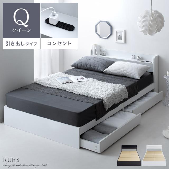 ベッド クイーン クイーンベッド 棚付き ローベッド ロータイプ おしゃれ 北欧 モダン シンプル ガーリー モノトーン メンズ ホテルライク コンセント ベット 宮付き ベッドボード ホワイト ブラック ベッドフレーム RUES(ルース) 引き出しタイプ フレーム単体販売