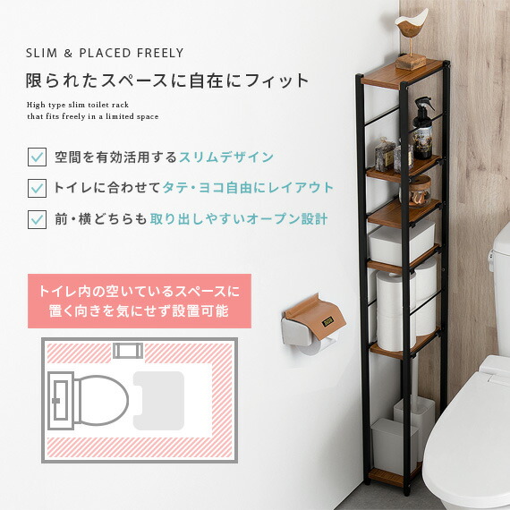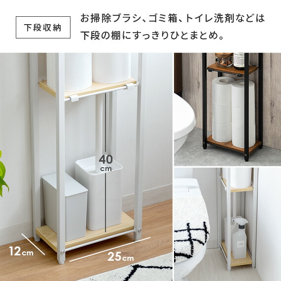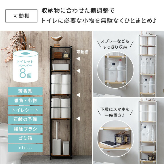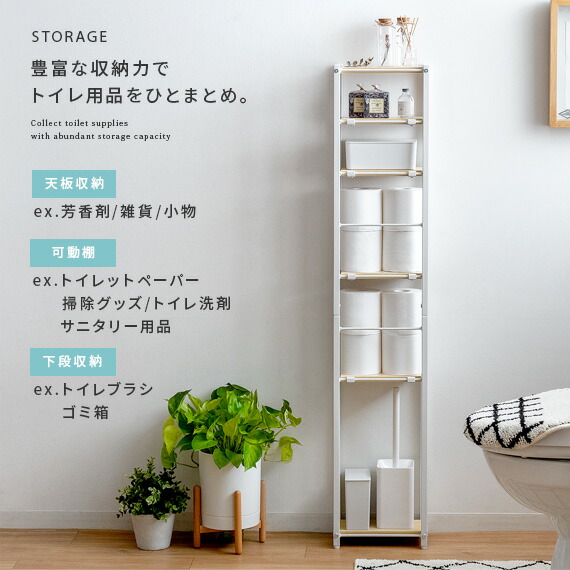 トイレラック スリム おしゃれ トイレ 収納 薄い 狭い ラック トイレットペーパー ストッカー 収納家具 掃除用具入れ 北欧 収納棚 棚 ナチュラル ホワイト ブラウン 木目 ハイタイプ
