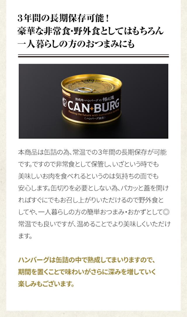 金格ハンバーグを缶詰めになりました!3年間の長期保管が可能