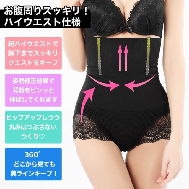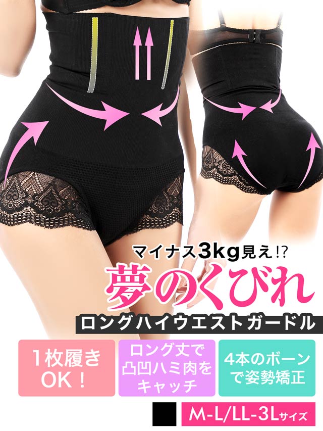ガードル ショーツ ヒップアップ くびれ 機能付き ブラックレース ロング ハイウエスト ガードル 単品 | 補正下着 ガードル 大きいサイズ 下半身 ショーツ 補正ガードル 矯正下着 加圧 着圧 お尻 ヒップ ヒップアップ
