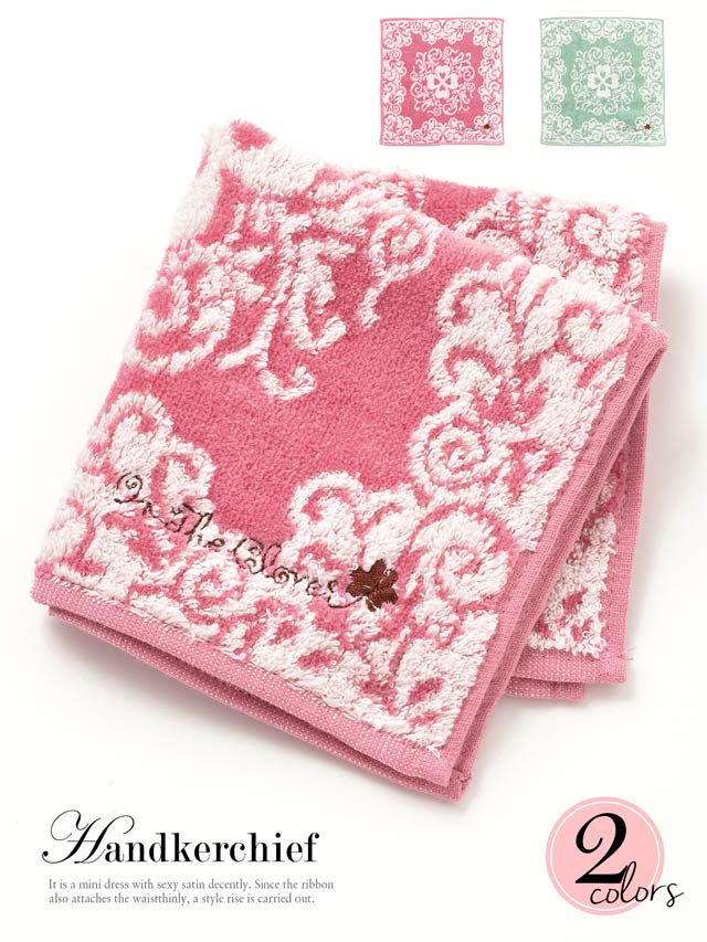 ハンカチ エレガントジャガード織りふんわりタオルハンカチ ピンク ミント キャバ カジュアル party 結婚式 レディース 女性 タオルハンカチ ハンカチタオル goods デイジーストア [12/15再販]