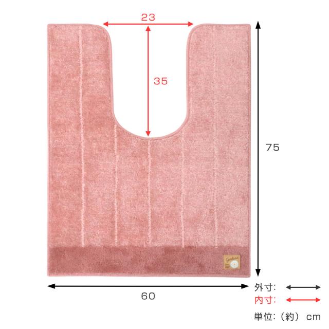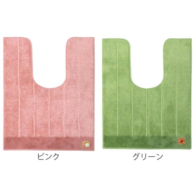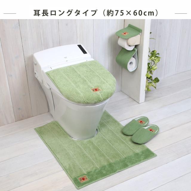 お花畑をイメージした柔らかいカラーのトイレマット、耳長サイズ(75×60cm)です。ピンクにはガーベラ、グリーンにはてんとうむしの可愛らしいタグが付いています。シンプルな中に可愛らしさが感じられるデザインは、トイレ空間を明るく優しい雰囲気にしてくれます。