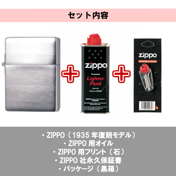 「 1935復刻モデルZIPPO フリント、オイルセット」