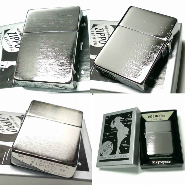 1935年に製造されていたZIPPOの復刻モデルのオイルとフリントが付いたセットです。