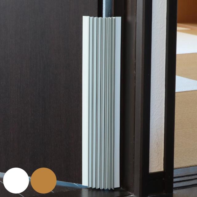 ドアの開閉時に指を挟んでしまう事故を防止してくれるストッパーです。ジャバラ状のストッパーを蝶番が大きく開く側に貼り付けるだけの簡単取り付けです。開閉した時に生じるドアと柱の隙間の幅に応じて伸縮し、すき間をカバーします。