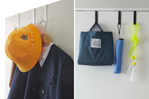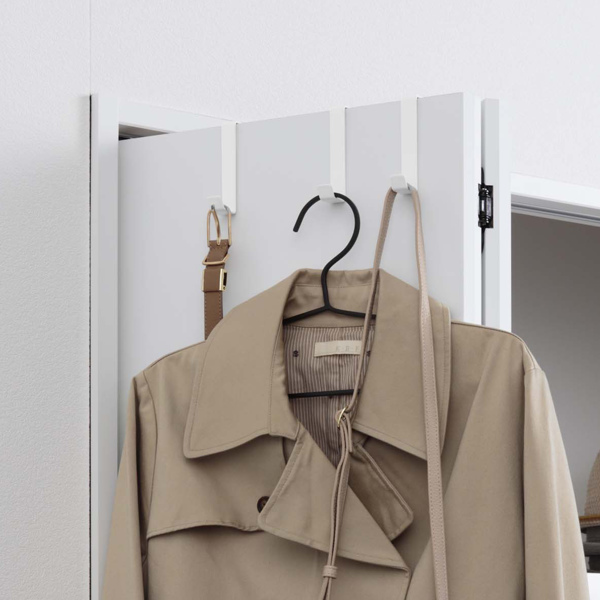 折れ戸にも取り付けが可能なので、次の日着ていく服や鞄、毎日着る通勤・通学のスーツや制服を掛ければ、バタバタしがちな朝の身支度もスムーズに準備ができます。目に入りやすい位置に引っ掛けられるので、忘れ物防止にもなります。