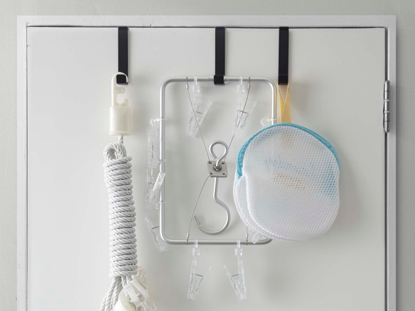 ランドリールームでは、お洗濯で使う洗濯ネットや小物干しハンガーなどを引っ掛けて収納するのもピッタリです。収納場所に困るお洗濯グッズもドアに引っ掛ければ洗濯機周りや洗面所下の棚がごちゃつかず、使いたい時にサッと手に取ることができます。