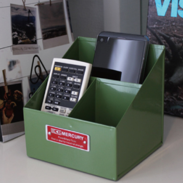 リモコンやスマートフォンなど、テーブル上の道具を収納できる便利なツールボックスです。ペン立てや工具立てにも最適です。