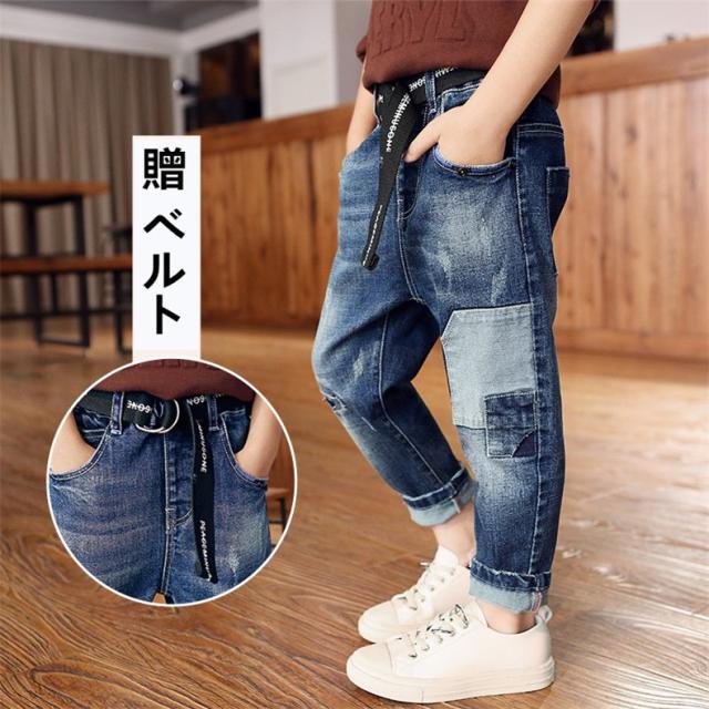 デニムパンツ キッズ ジュニア ダメージ加工 男の子 ボーイズ 子供服 ロングパンツ ジーンズ ジーパン ズボン クラッシュ 新作