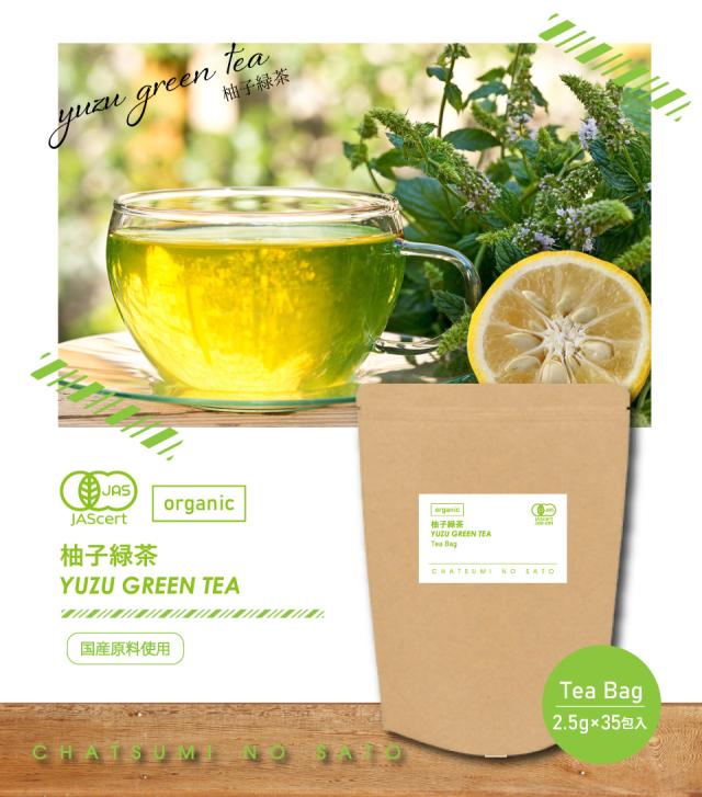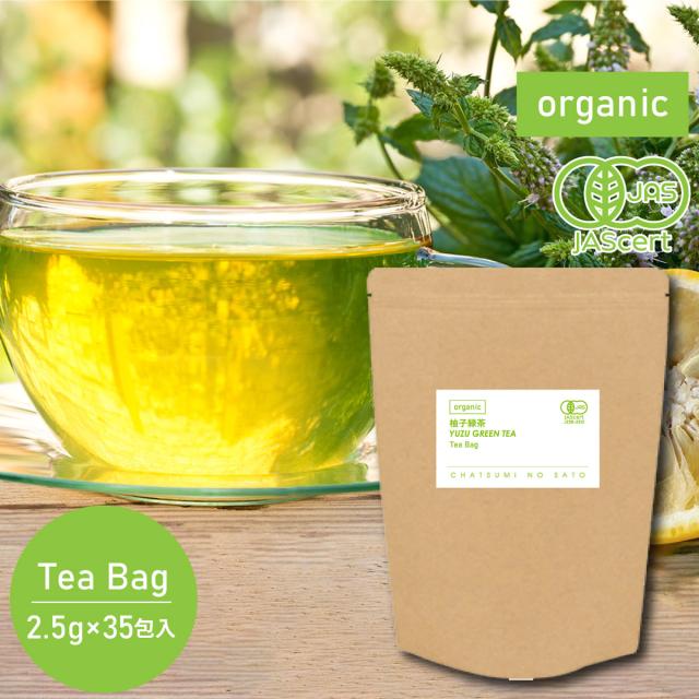 オーガニック 柚子緑茶 糸付き ティーバッグ (2.5g×35包入り)有機 ゆず 緑茶 日本茶 ティーパック 糸つき 有機栽培 国産 ユズ 柚子 カテキン