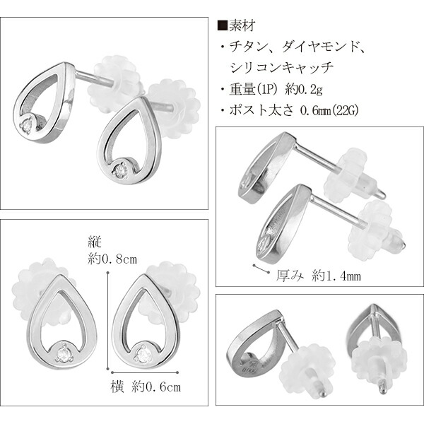 ドロップの中心にダイヤモンドが輝くチタンピアスです。