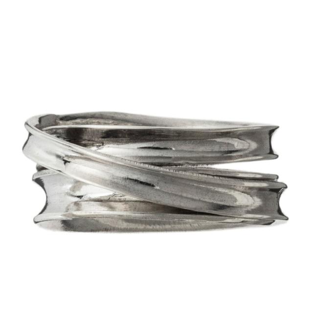 細身のリングが重なり合う事で高さが出て、ほど良い存在感になっております。