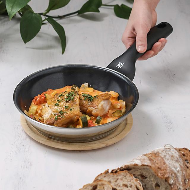 WMFの高い熱伝導と蓄熱性はそのままに、セラミック加工でこびりつきにくい。