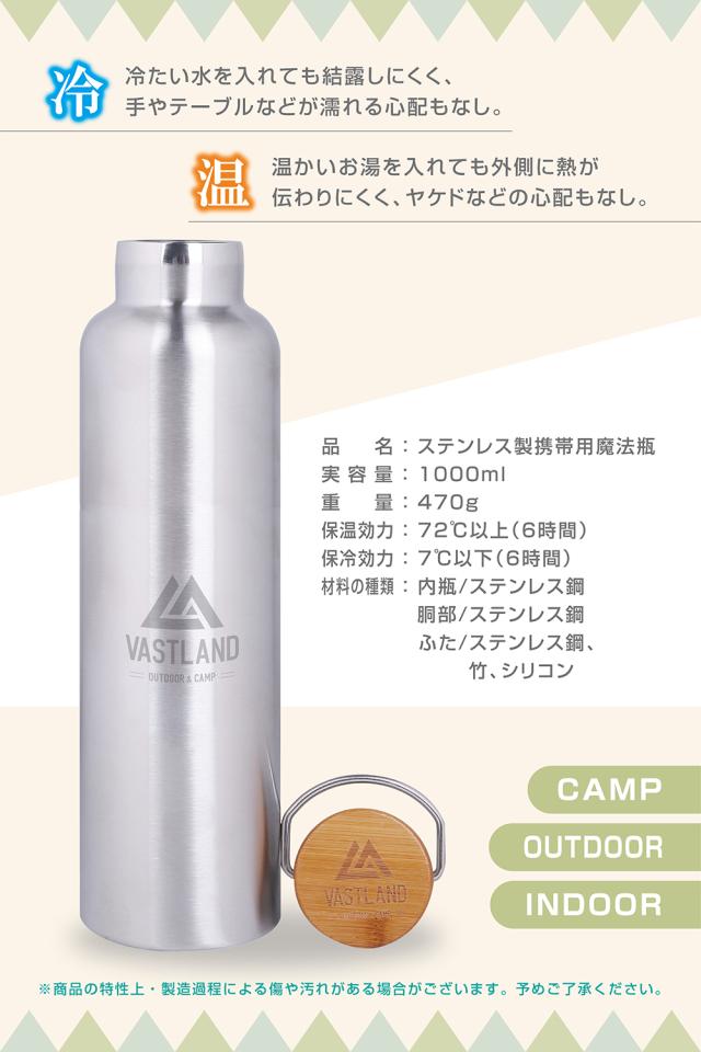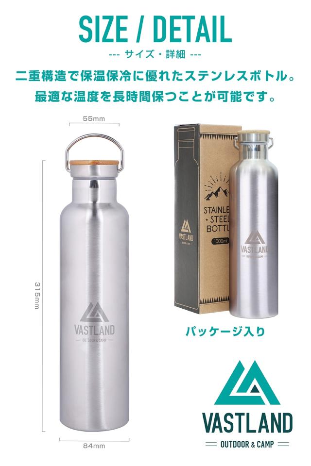 VASTLAND 水筒 ステンレスボトル マグボトル 1000ml 保温 保冷 二重断熱構造