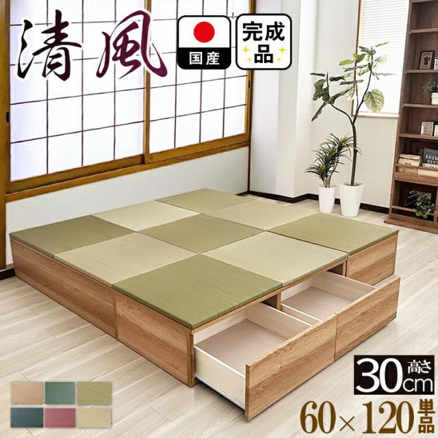畳収納 畳 ユニット 完成品 収納 緑茶カテキン+い草 60×60 高さ30cm ナチュラル 日本製 清風 収納付き 高床式ユニット畳 い草 収納 デザイン畳 リビング 畳ボックス ロータイプ 畳み たたみ マット 置き畳 畳ユニット ユニット畳 マットレス畳 フローリング 抗菌