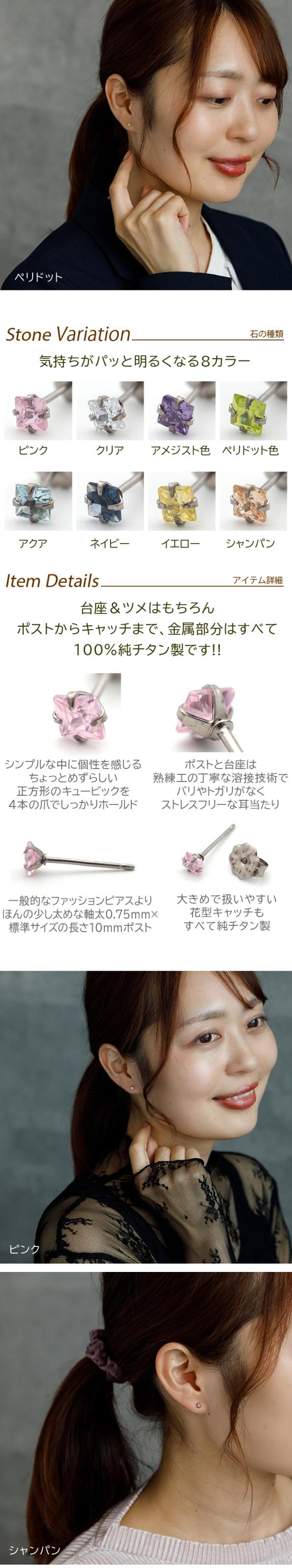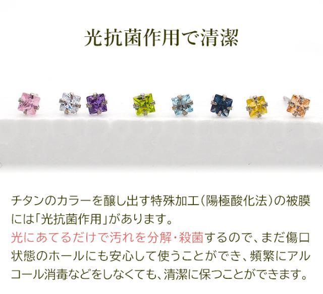 チタン ピアス つけっぱなし セカンドピアス 純チタン キュービック 3mm スクエア 四角 金属アレルギー対応 医療用 かわいい カラフル おすすめ 小さめ ミニ 極小 人気 メンズ レディース