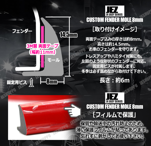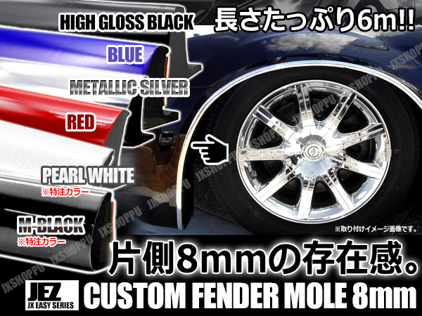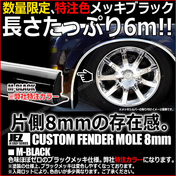 [特注] フェンダーモール 幅:8mm 長:6m [メッキブラック2] ビス付き ツライチ ハミタイ ドレスアップ 保護 フェンダー 車 汎用 送料無料