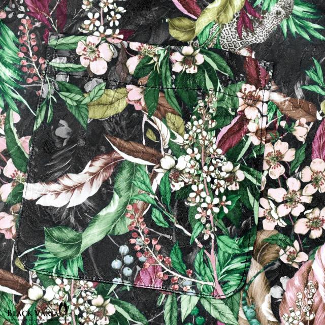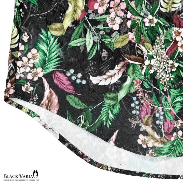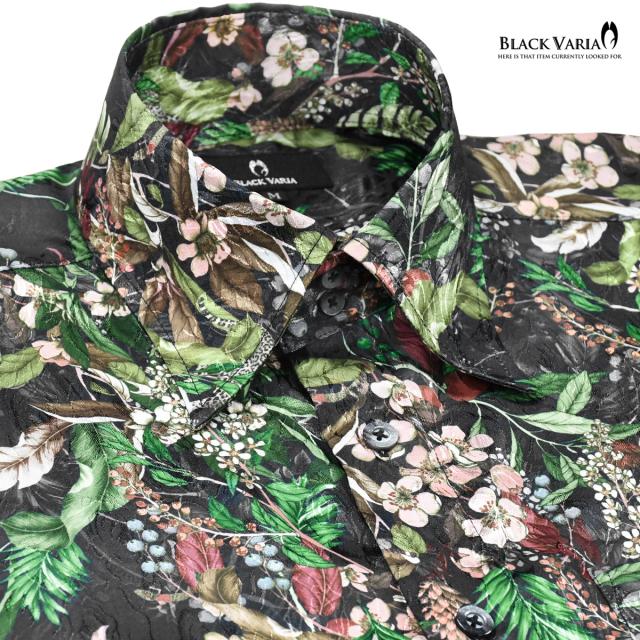 サテンシャツ ドレスシャツ ドゥエボットーニ ボタニカル柄 花柄 桜 レギュラーカラー 日本製 ジャガード(グリーン緑ブラック黒) 201953