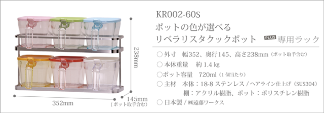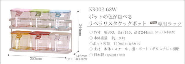 使う楽しさを演出する。丸いフォルムが柔らかく優しい印象。 何処か可愛いリベラリスタクックポット。 専用ラックは付属のポットがスッキリ収納できて、上段にもスパイス類などが置けます。 ポットの色は7色から選べて組み合わせ自由、自分だけの組み合わせができます。 ●ポットの色の選び方● カートに入れた後に、オプションを選択の画面でプルダウンよりお好きなカラーをお選びください、組み合わせは自由です。 ※特に選択がない場合はホワイトの商品を発送致します。 |