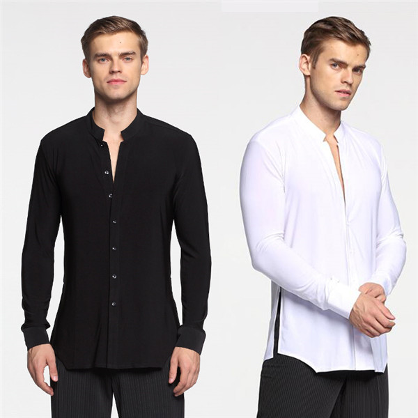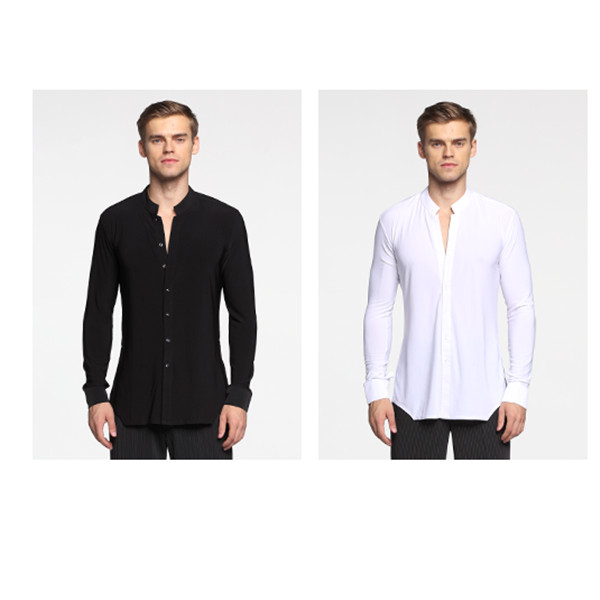 【サイズ有S/M/L/XL/2XL】メンズ ラテンダンス用シャツ 男性用 ダンス衣装 上着 ダンスウェア 無地 社交 練習着 ワルツ チャチャチャ ルンバ カウボーイ ラテン ラテンダンスシャツ ステージ 衣装 カウボーイダンス 男性社交ダンス衣装 競技用 演出 ブラック ホワイト dm277c0c0s3