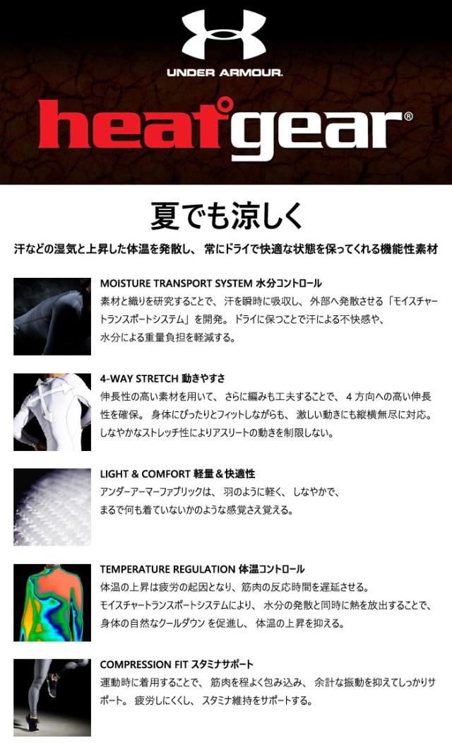 ヒートギア アーマー:伸長性に優れた生地を使用しあらゆる動作において動きやすい。高い吸汗速乾性を誇り、酷暑時の快適さを実現。