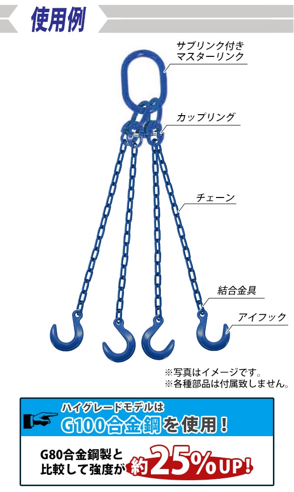2本3本4本吊りにご使用ください。サブリンク付きマスターリンク