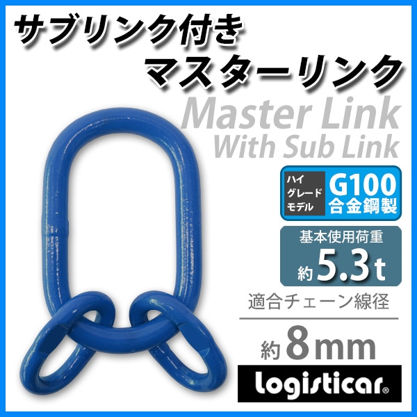 マスターリンク サブリンク付き 使用荷重約5.3t 約5300kg G100 鍛造 ハイグレードモデル アッセンブリー 親子リンク 中間リンク 中間リング 吊り具 適合チェーン線径約8mm チェーンスリング クレーン ホイスト 吊り上げ 運搬 建築 青 ブルー mlinks53tg100b