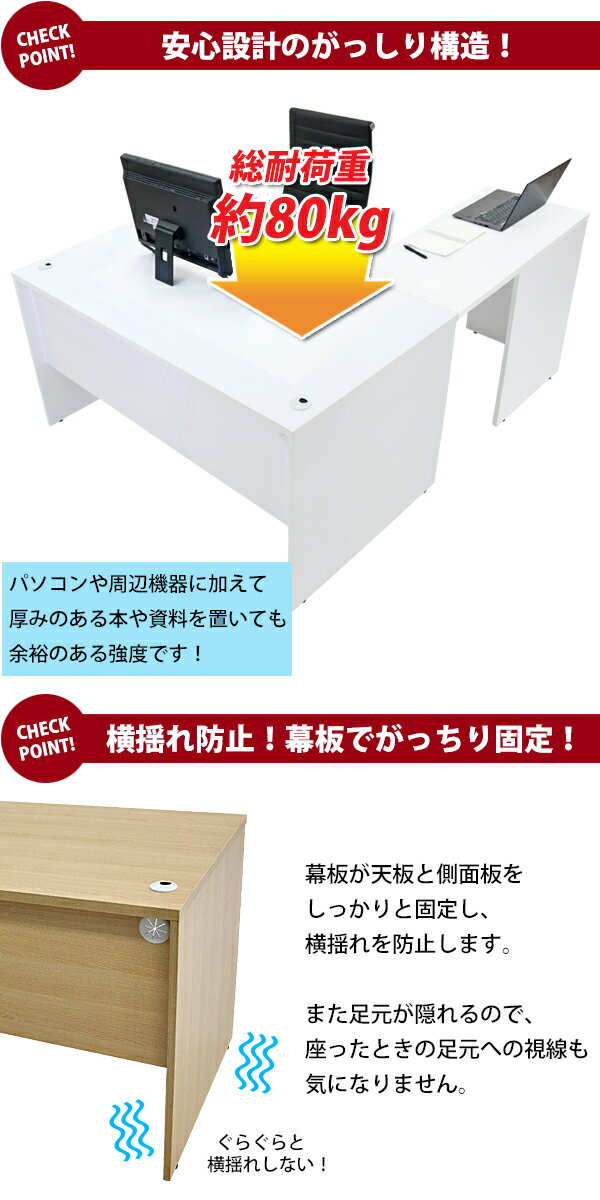ワークデスク L字型 約W160×D180×H74 幕板 ゲーミングデスク L字デスク L型 サイドデスク 連結 オフィスデスク エグゼクティブ パソコンデスク PCデスク 約W1600×D1800×H740 平机 コーナーデスク 会社 事務所 机 事務机 wdesk16080f3