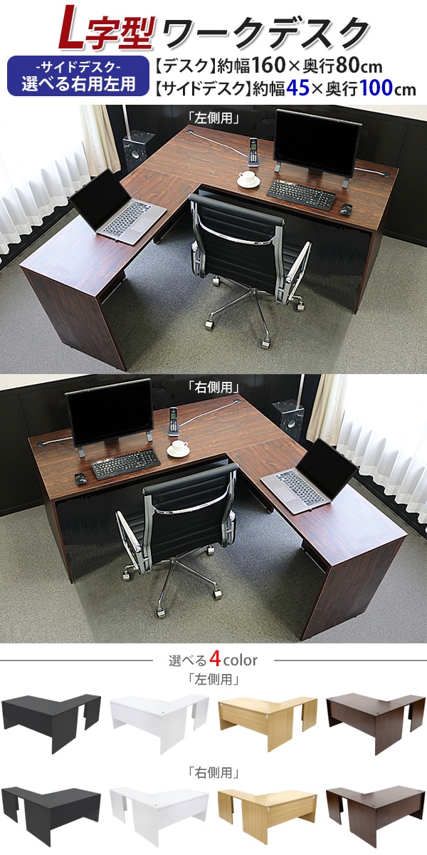 選べる4カラー&右用左用 ワークデスク L字型 約W160×D180×H74 幕板 ゲーミングデスク L字デスク L型 サイドデスク 連結 オフィスデスク エグゼクティブ パソコンデスク PCデスク 約W1600×D1800×H740 平机 コーナーデスク 会社 事務所 机 事務机 wdesk16080f3
