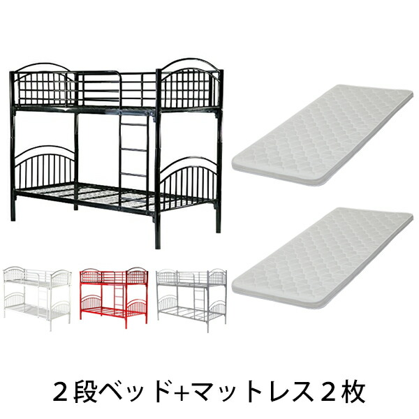 2段ベッド 二段ベッド カラー選択 快適マットレス付き 2枚 セミシングルベッドマットレス セミシングル マットレス 厚さ約6cm 圧縮 コンパクト ポリウレタンフォーム ウレタン セミシングルマット スチールベッド パイプベッド ベッド 寝具 bed052a005ss2p