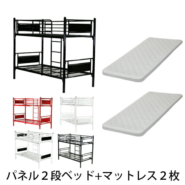 カラー選択!パネル2段ベッド&マットレス2枚セット!