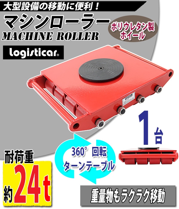 マシンローラー 耐荷重約24t ポリウレタン製ホイール 1台 単品 360° ターンテーブル 回転台 運搬ローラー 運搬マシンローラー 重量物 低床 ポーター 赤 コロ車 ウレタンローラー 搬入 搬出 運搬車 台車 キャリー マシーン ローラー 引越 RED レッド roller24tp1