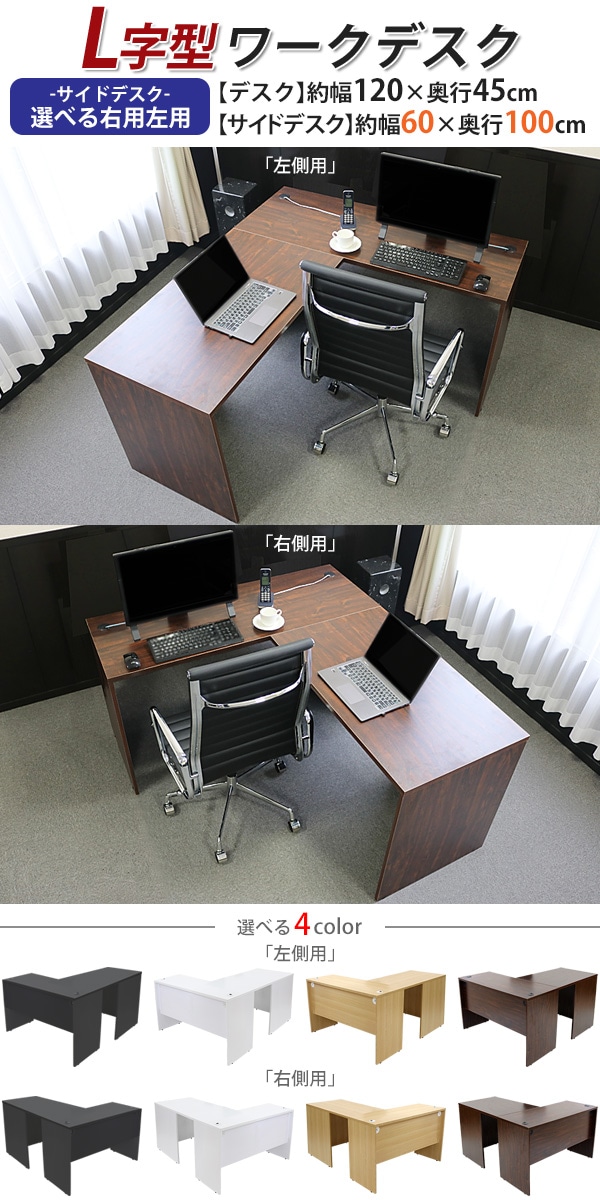 選べる4カラー&右用左用 ワークデスク L字型 約W120×D145×H73.5 幕板 ゲーミングデスク L字デスク L型 サイドデスク 連結 オフィスデスク エグゼクティブ パソコンデスク PCデスク 約W1200×D1450×H735 平机 コーナーデスク 会社 事務所 事務机 desk0712045f1