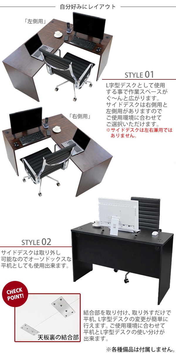 | ■作業スペースを広く確保出来る、L字型ワークデスクです。 ■サイドデスクの幅が約60cmのタイプです。 ■会議室や事務所等、オフィス家具として様々なシーンでお使いいただけます。 ■天板には、メラミン加工を施しています。 ■幕板が天板と側面板をがっちりと固定!横揺れを防止します。 ■ネジ穴隠しのシール付き。 ■デスクの天板と幕板に配線収納ホールが2カ所ずつ備わっています。 ■アジャスターで高さの調節が可能です。(高さ調節範囲〜約15mm) ※こちらの商品は、組立て式です。組立てにはプラスドライバーが必要です。お客様でご用意ください。 ※組立図が付属します。 ※サイドデスクの設置個所をご確認のうえご注文ください。 ■材質:パーティクル(パーチクル)ボード(メラミン加工)(本体、サイドデスク)、プラスチック(アジャスター、配線収納ホール) ■重量:約44kg(デスク:23kg、サイドデスク:21kg) ■総耐荷重:約80kg ●新品商品ではありますが、輸入商品の為、多少の擦り傷などがある場合がございますので、ご納得の上ご購入下さいませ。 ●ご購入後、お客様ご都合によるご返品、ご返金等は一切お受け致しておりません。 ●本商品を使用した際に発生したトラブル、事故につきまして、当社は一切の責任を負いません。ご使用に関しましては、全て自己責任にてお願い致します。 |