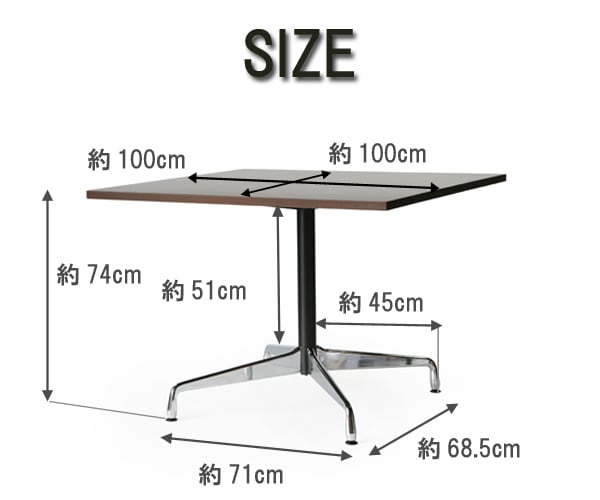 | 送料無料 新品 イームズ コントラクトベーステーブル コントラクトテーブル イームズテーブル アルミナムテーブル カフェテーブル W100×D100×H74 cm スクエア ウォールナット ST | |||||