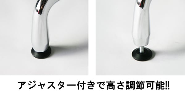 | 材質 | 天板:メラミン 脚:アルミニウム(クロームメッキ)、スチール |
