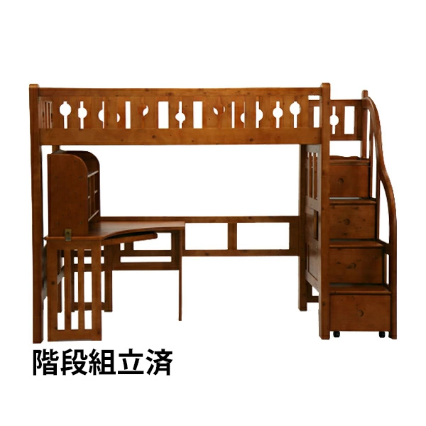 階段付きロフトベッド 階段組立済 ロフトベッド システムベッド ホルムアルデヒド未使用 階段付き デスク付き パイン材 木製 木製ベッド 二段ベッド シングルベッド すのこベッド ブラウン