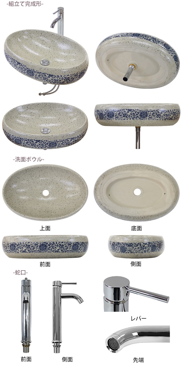洗面ボウル 3点セット 洗面ボール 混合水栓 排水栓 手洗器 手洗い器 セラミック 陶器 洗面 トイレ用 青 花柄 蛇口 置き型 ベッセル型 丸型 楕円形 洗面器 洗面カウンター シングルレバー 混合栓 おしゃれ 手洗い 洗面用 リフォーム 交換 ブルー wbowl73rad802