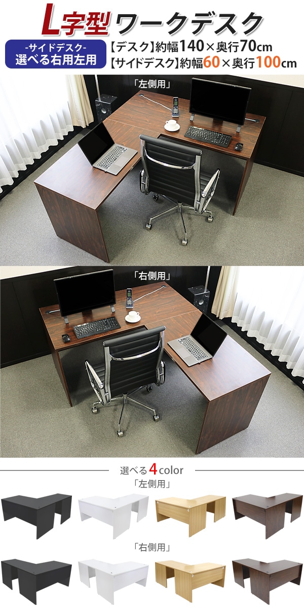 選べる4カラー&右用左用 ワークデスク L字型 約W140×D170×H73.5 幕板 ゲーミングデスク L字デスク L型 サイドデスク 連結 オフィスデスク エグゼクティブ パソコンデスク PCデスク 約W1400×D1700×H735 平机 コーナーデスク 会社 事務所 机 事務机 wdesk14070f1